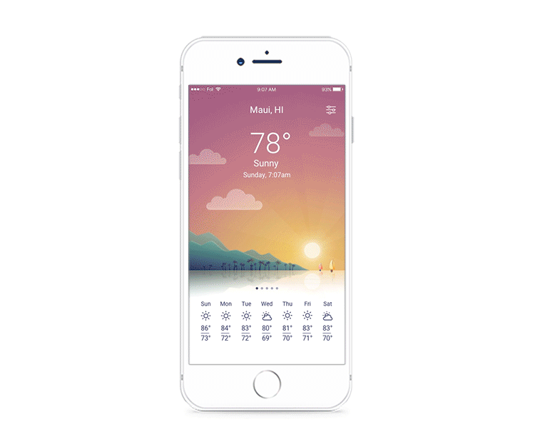 I asked her to think about evoking a sense of emotion and atmosphere for 6 different locations and weather conditions. Through this project, she learned about color, iconography, vector illustration, motion, and creating interactive prototypes.